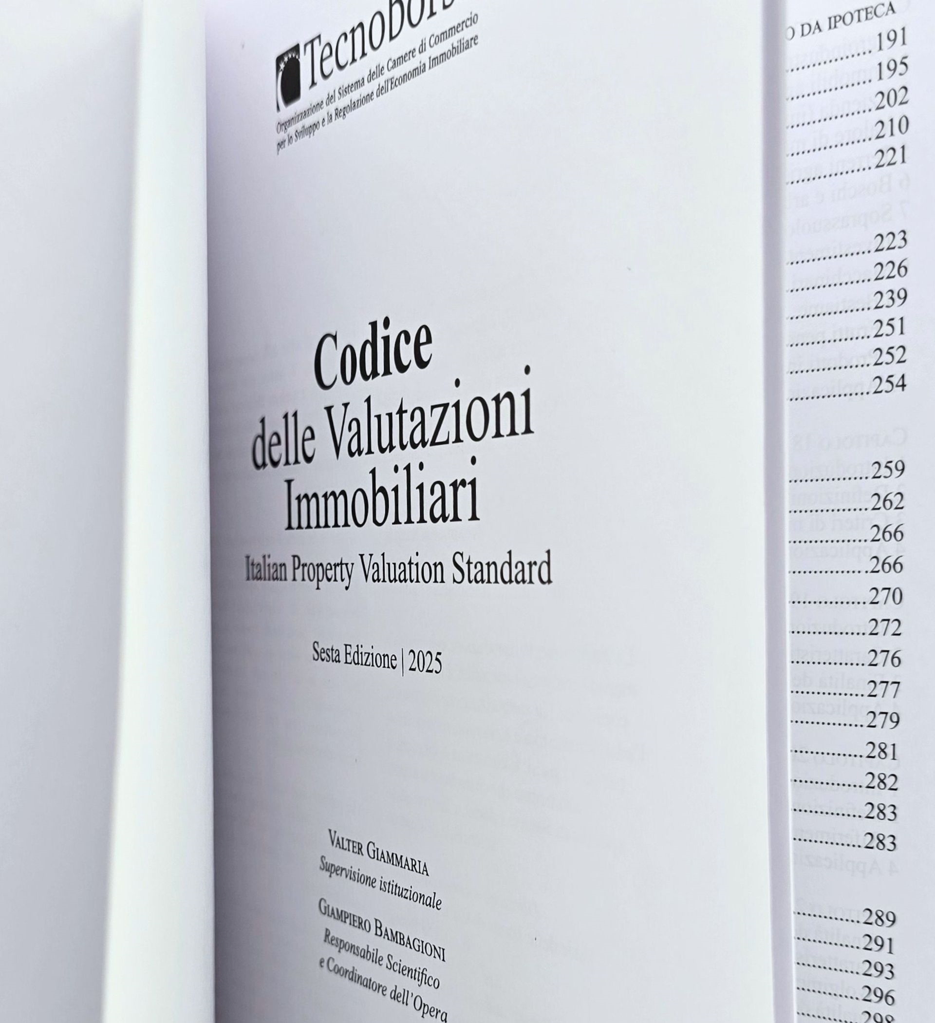 Il Codice delle Valutazioni Immobiliari di Tecnoborsa - Italian Property Valuation Standard (edizione 2025) costituisce lo standard affidabile di riferimento per una pluralità di soggetti del settore economico-finanziario, per i professionisti della filiera per le banche, gli investitori, i Tribunali e in generale per gli enti che necessitano di rapporti estimativi caratterizzati da oggettività, scientificità e intelligibilità degli output.