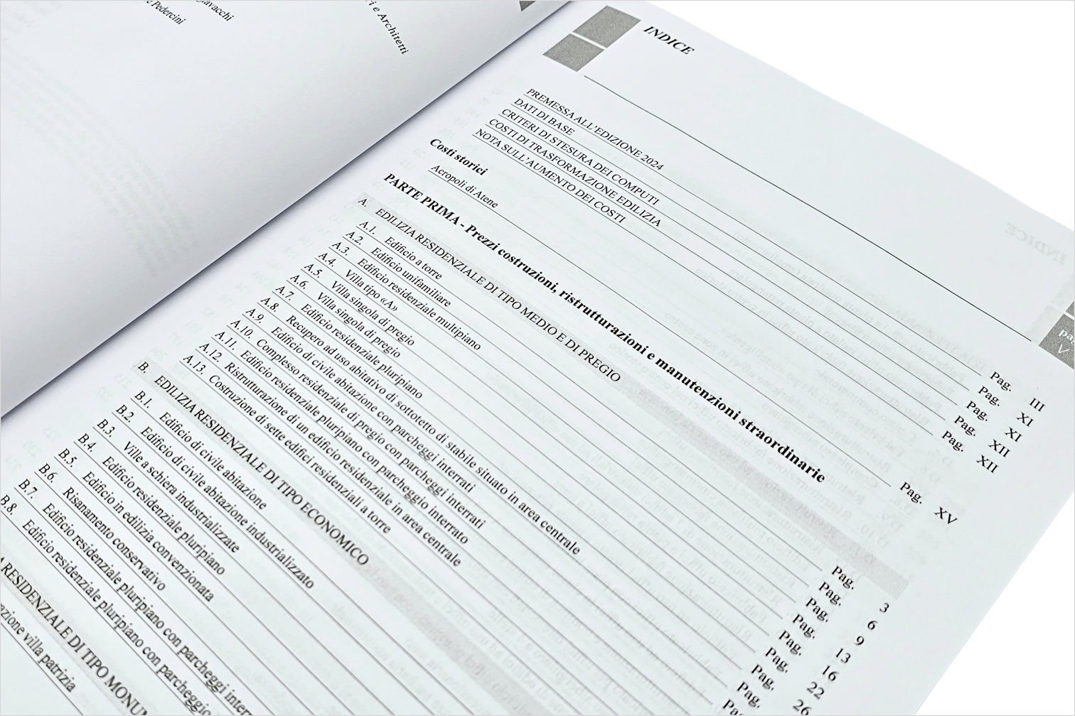 È l’unico Prezzario specifico dedicato alle tipologie edilizie, necessario per capire quanto costa costruire al metro quadrato e al metro cubo a seconda della destinazione dell’edificio.