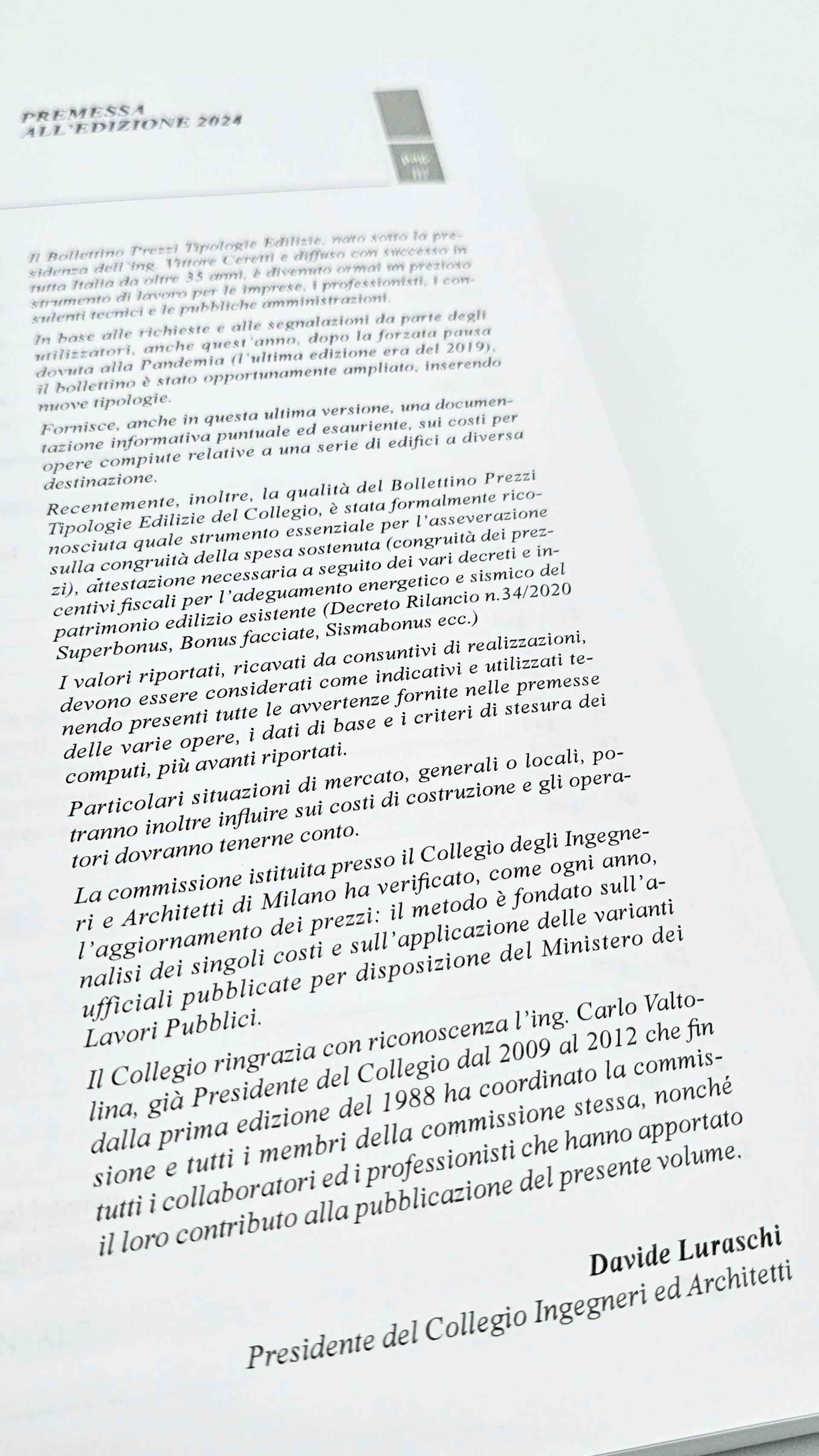 Il Bollettino Prezzi Tipologie Edilizie, nato sotto la presidenza dell’ing. Vittore Ceretti e diffuso con successo in tutta Italia da oltre 35 anni, è divenuto ormai un prezioso strumento di lavoro per le imprese, i professionisti, i consulenti tecnici e le pubbliche amministrazioni.